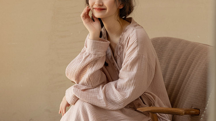 Breathable cotton gauze, muslin-feel pajama set with lining for coverage, Soft textured cotton, relaxed fit for sleep or lounging